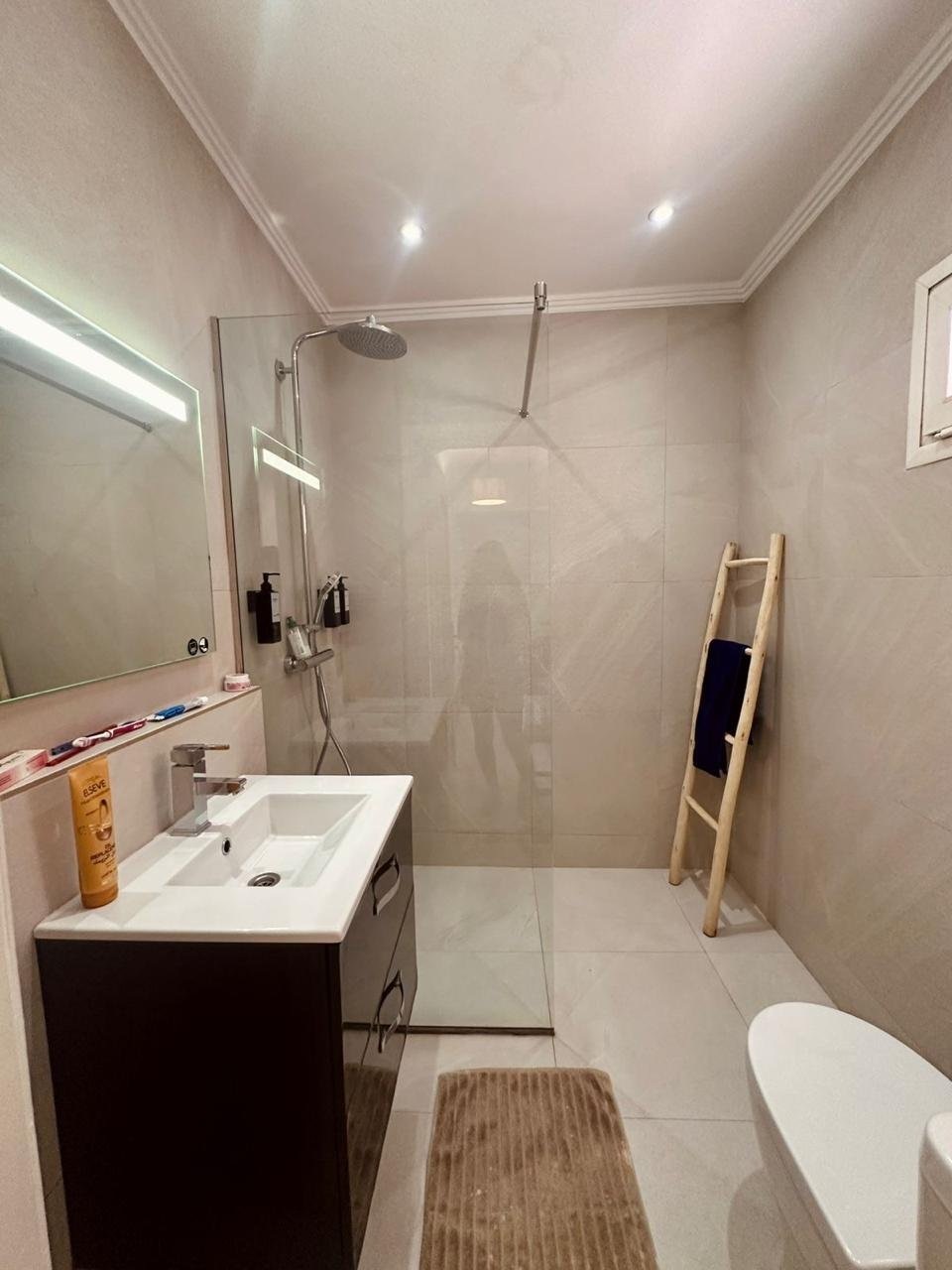 • Une salle de bain moderne avec douche à l’italienne et wc.